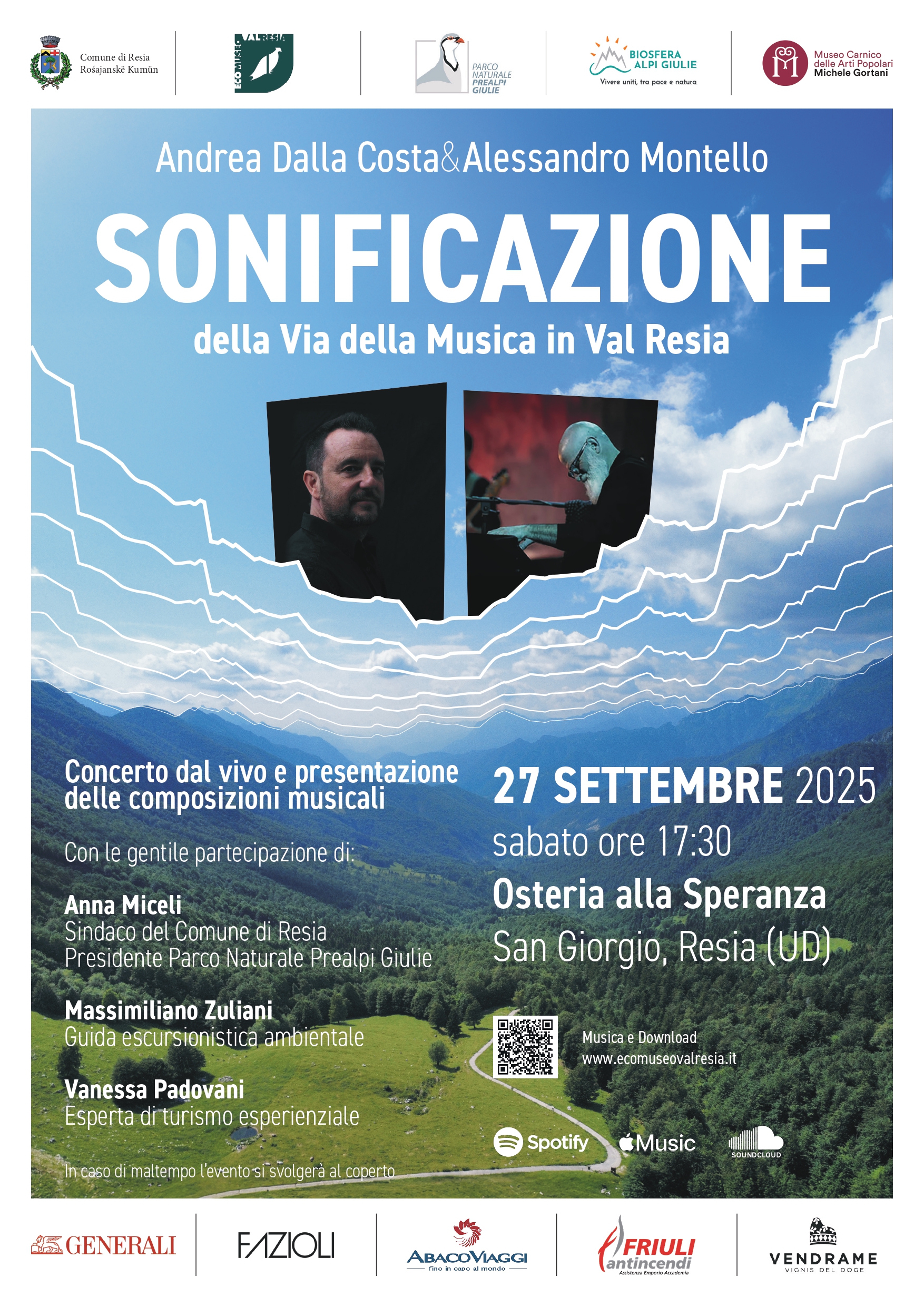 Dal lavoro di analisi del DNA degli alberi presenti in Val Resia e dalla registrazione dei bioritmi vegetali, l’artista Andrea Dalla Costa ha avviato un processo di ascolto profondo del paesaggio naturale lungo la Via della Musica in Val Resia. Le sequenze genetiche sono state tradotte in codice musicale, poi interpretato, arrangiato e armonizzato dal pianista Alessandro Montello, dando forma a inedite sonificazioni. Un progetto che invita a riscoprire il patrimonio arboreo come voce viva del territorio, da tutelare e custodire con consapevolezza.