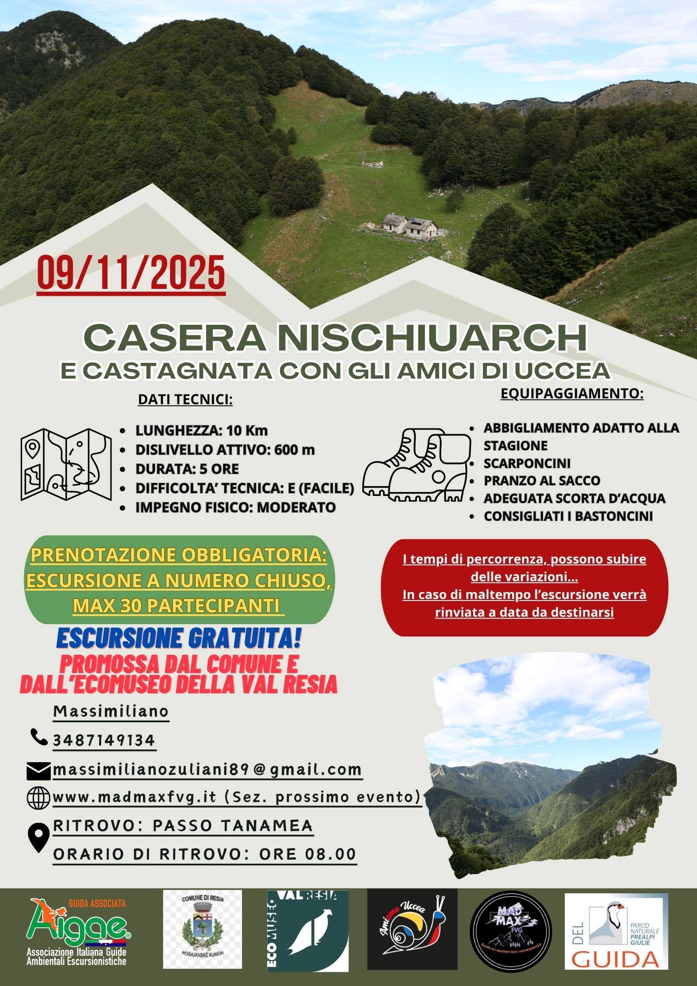 La prossima escursione guidata dell’Ecomuseo Val Resia ci porterà a Casera Nischiuarch domenica 9 novembre, con ritrovo a Passo Tanamea alle ore 8.00.