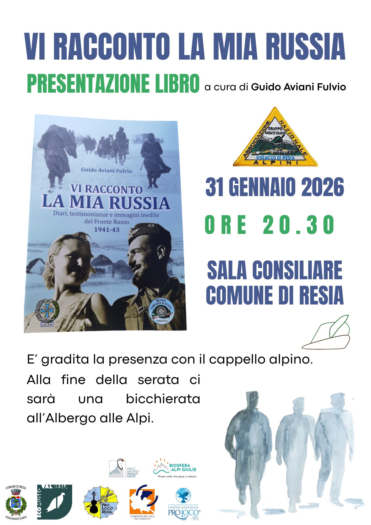 Presentazione libro 14 Gen News Sabato 31 gennaio 2026, alle ore 20.30 nella sala consiliare del municipio, presentazione libro “Vi racconto la mia Russia” a cura di Guido Aviani Fulvio