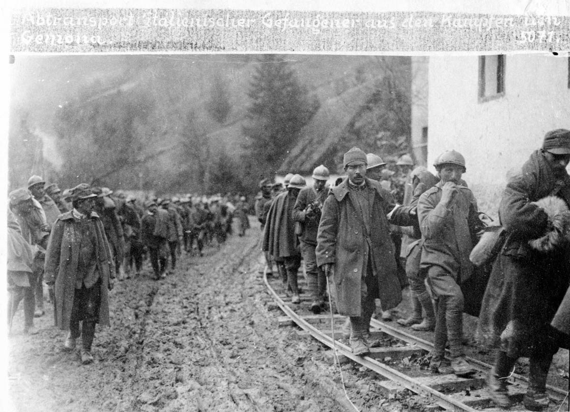 Il 24 ottobre 1917, dopo due anni e mezzo in cui l’esercito italiano si era tenuto prevalentemente all’offensiva, la 14^ Armata austro-germanica scatenò la 12^ Battaglia dell’Isonzo, sviluppatasi nel famigerato “Sfondamento di Caporetto”. In un solo giorno di fuoco, il fronte italiano tra il Monte Rombon e le propaggini settentrionali dell’Altopiano della Bainsizza fu disarticolato e le divisioni d’attacco austro-ungariche e germaniche poterono infiltrarsi nelle direttrici vallive delle Prealpi Giulie. Tra queste c’erano la Valle Uccea e la Val Resia, i luoghi dove la 2^ Armata si congiungeva con la Zona Carnia e le vie più brevi per puntare al Fiume Tagliamento.